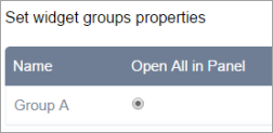 - Open All in Panel—When the widget group icon is clicked, all widgets within the group open.